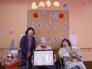 3/11(火)、利用者のU氏(男性)が100歳のお誕生日をお迎えに